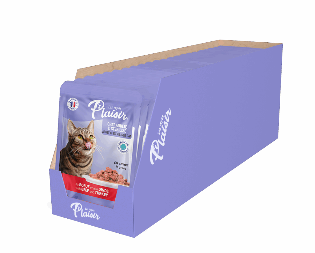 Plaisir პაუჩი საქონლით & ინდაურით – ზრდასრული კატისთვის 100გ